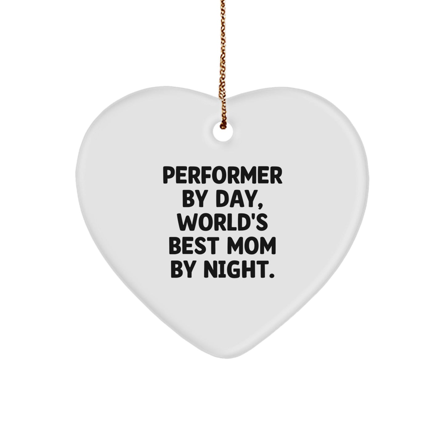 Performer Gifts from Friends - Funny Heart Ornament for Christmas - 'Performer By Day, World's Best Mom By Night.'