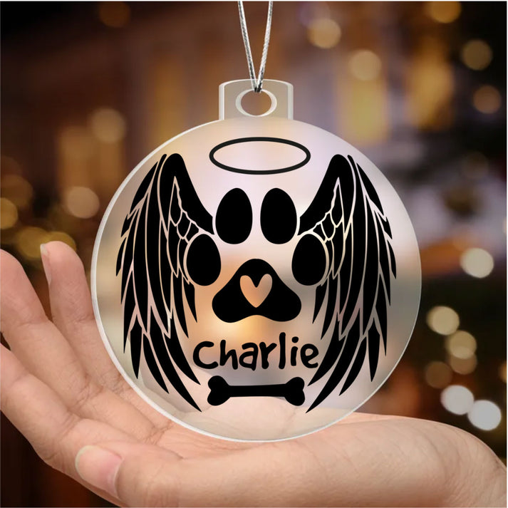 Personalized Pet Memorial Acrylic Ornament with Angel Wings – Custom Dog or Cat Remembrance Keepsake with Optional Gift Box