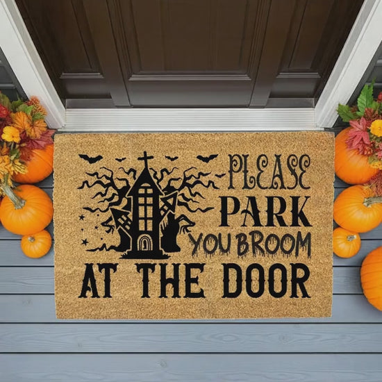 Turn your front porch into a spellbinding welcome zone with our “Please Park Your Broom at the Door” Coir Doormat! 🧙♀️🕸️