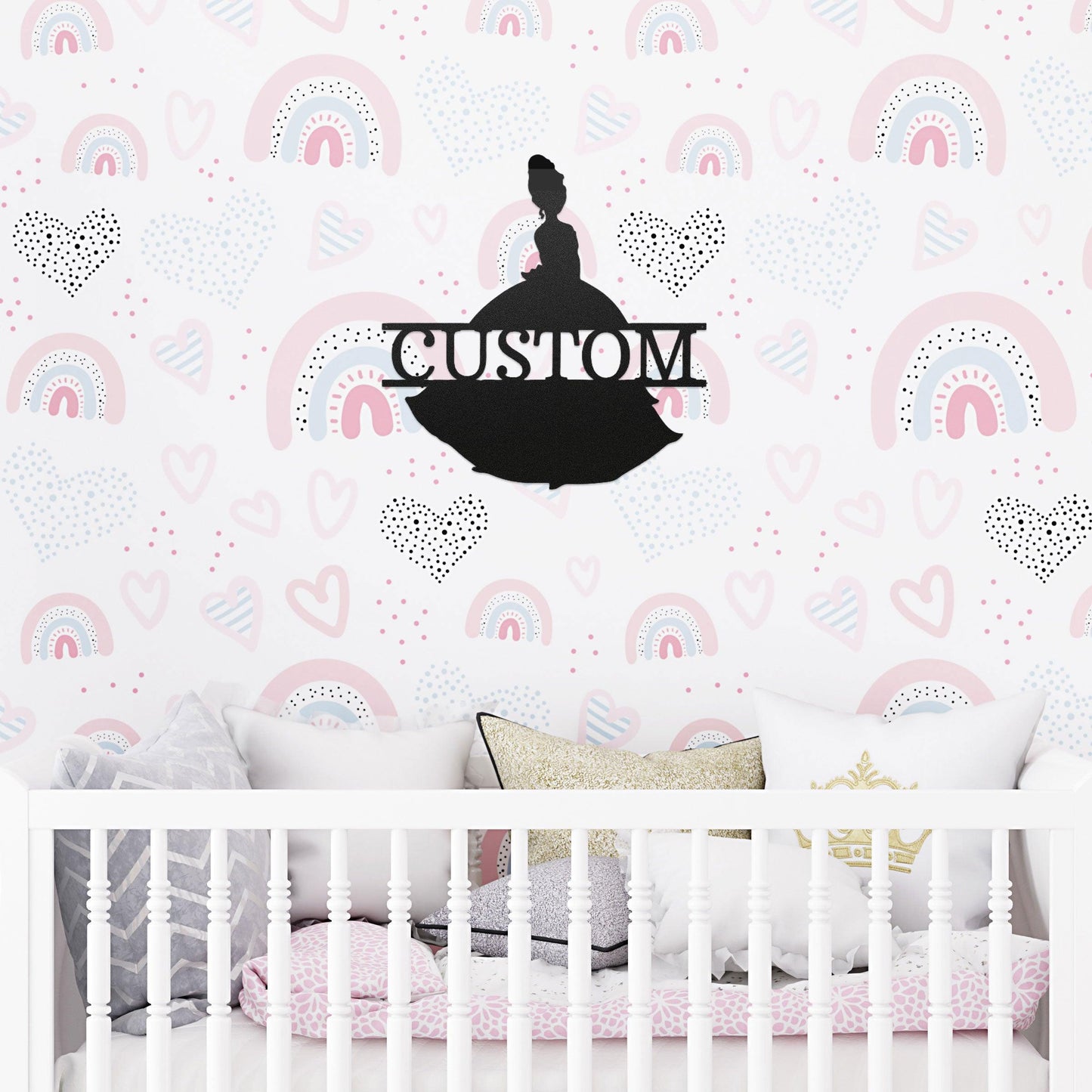 Check out the Princess collection: https://mallardmoongiftshop.com/products/princess-silhouette-monogram-metal-art-steel-wall-sign