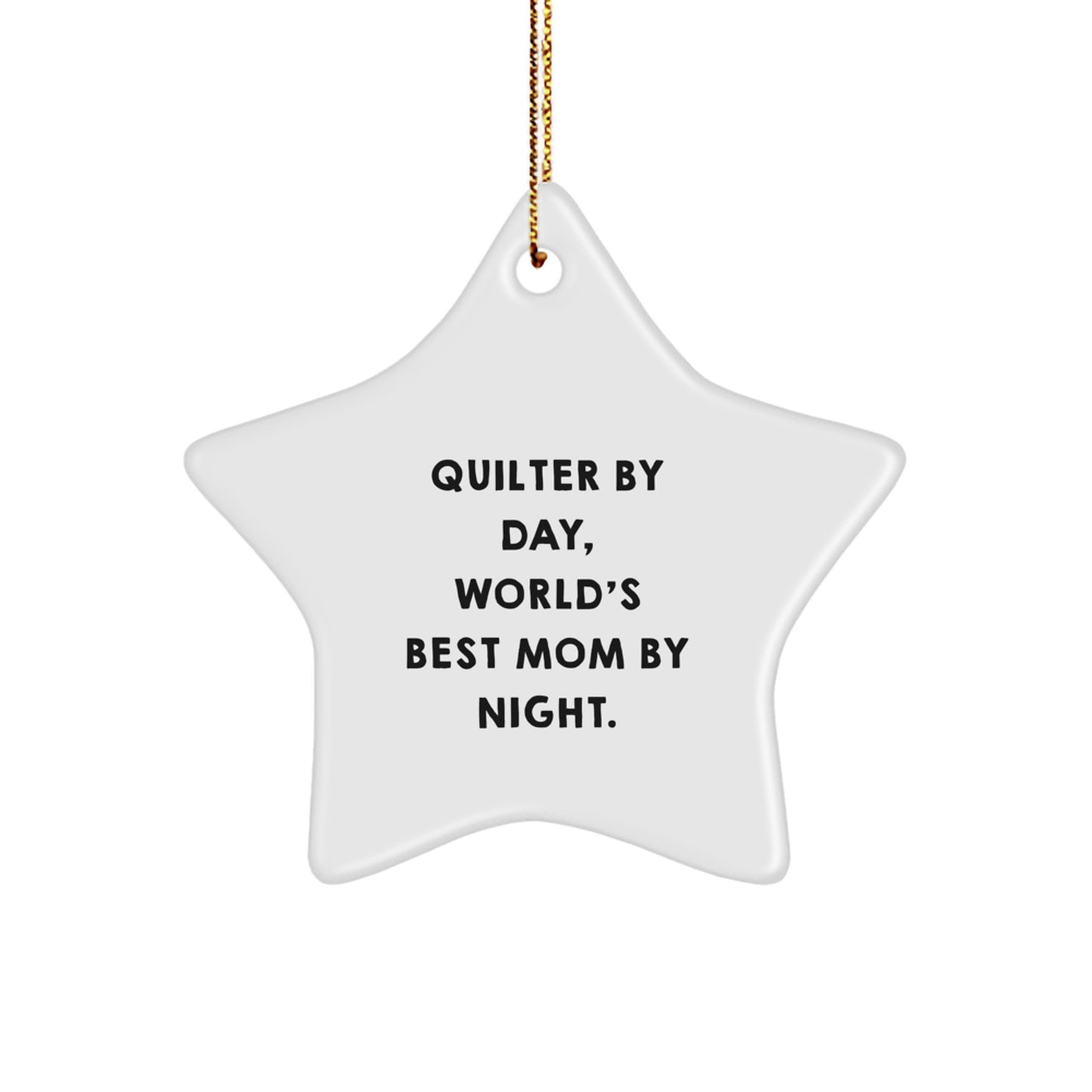 Quilter Gifts, Quilter By Day, World's Best Mom By Night. Funny Star Ornament for Christmas Unique Gifts from Mom to Quilter, Quilter's Unique Gift