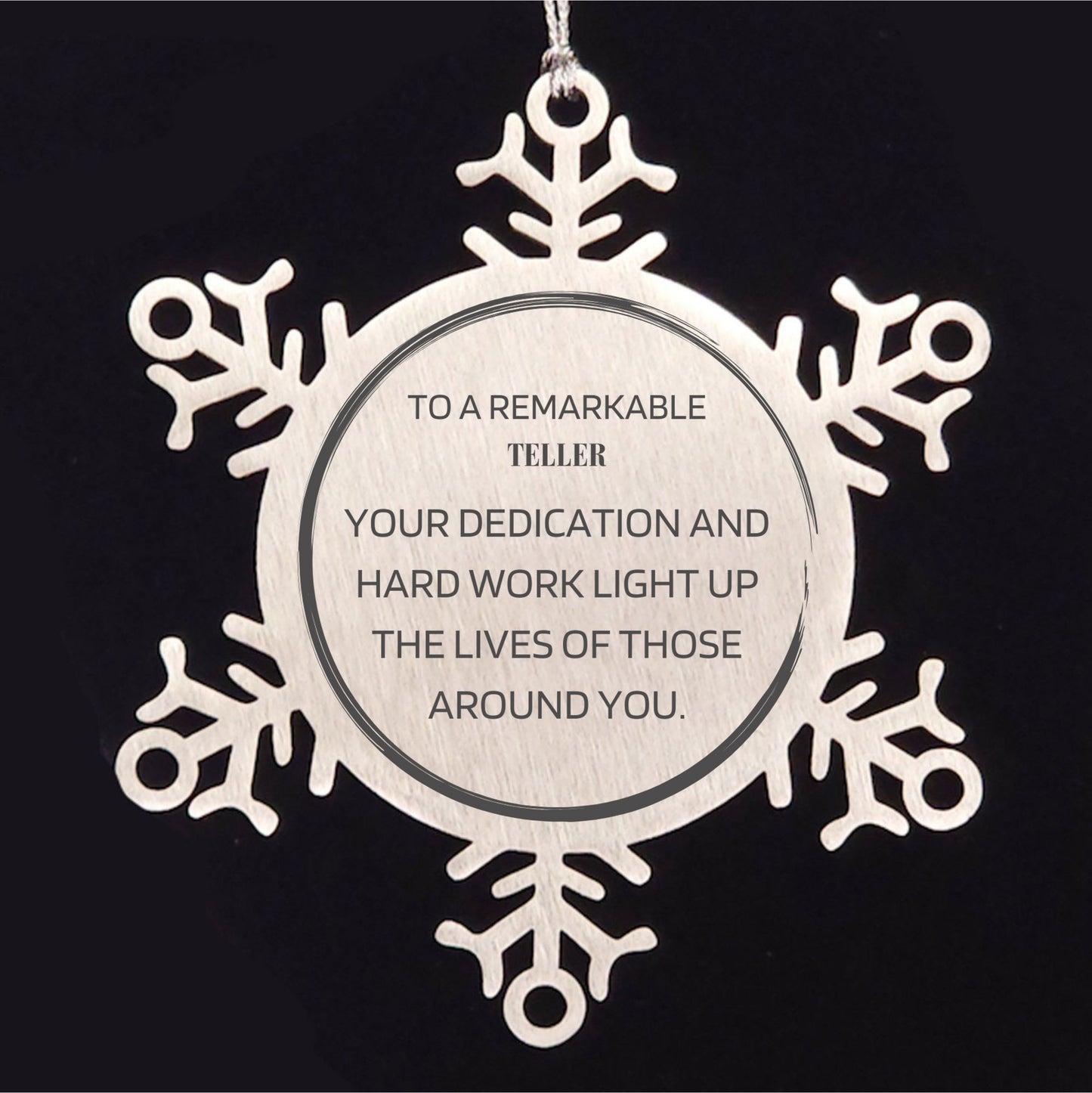 Remarkable Teller Gifts, Your dedication and hard work, Inspirational Birthday Christmas Unique Snowflake Ornament For Teller, Coworkers, Men, Women, Friends