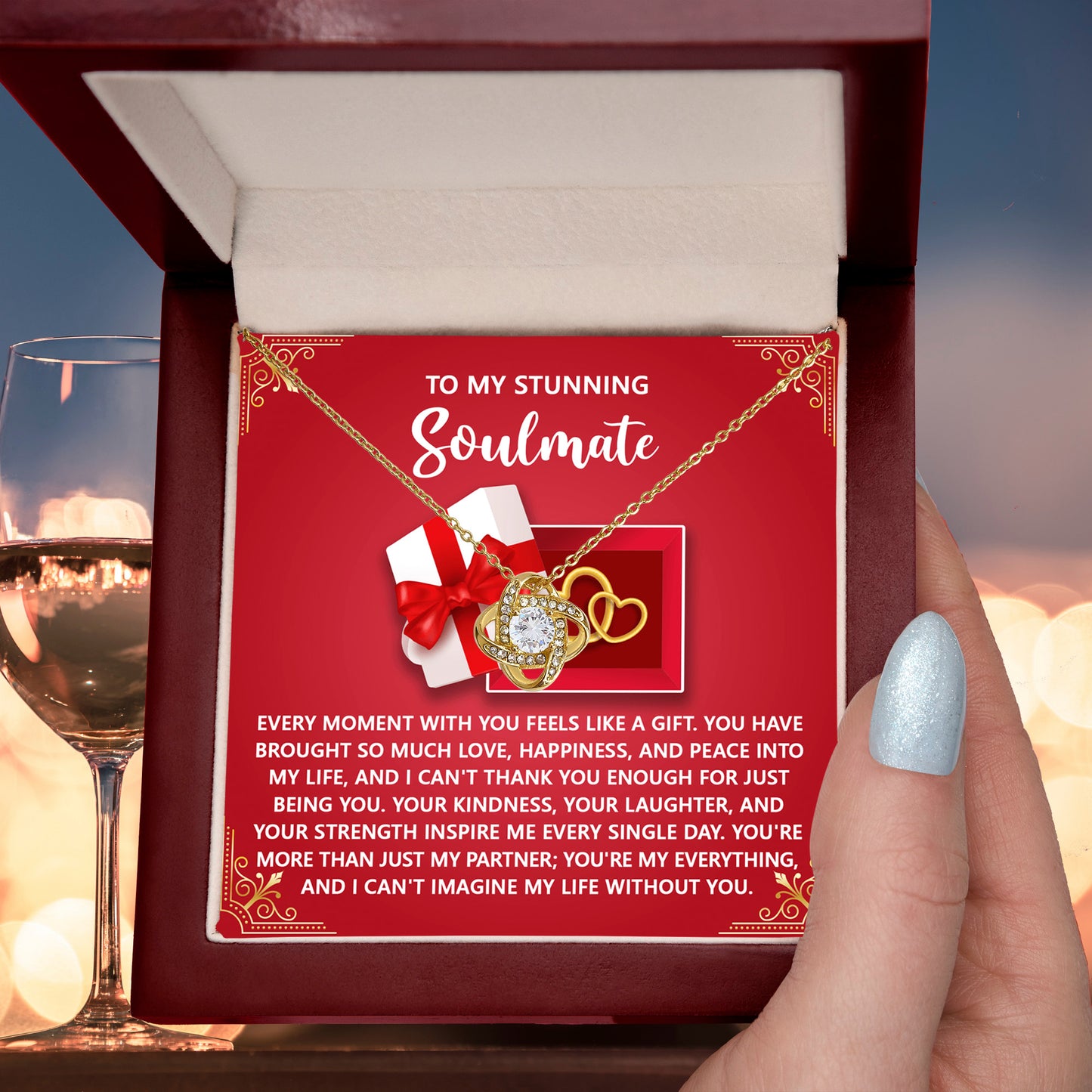 Celebrate your soulmate with this beautiful Love Knot Pendant Necklace, paired with a heartfelt message card that perfectly conveys your gratitude and love: