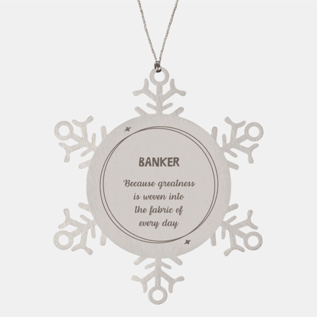 Sarcastic Banker Snowflake Ornament Gifts, Christmas Holiday Gifts for Banker Ornament, Banker: Because greatness is woven into the fabric of every day, Coworkers, Friends