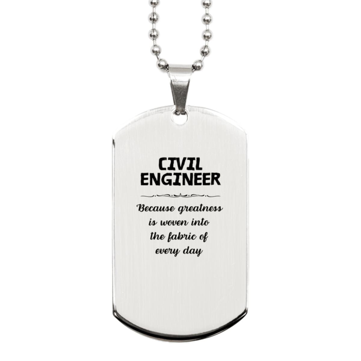 Sarcastic Civil Engineer Silver Dog Tag Gifts, Christmas Holiday Gifts for Civil Engineer Birthday, Civil Engineer: Because greatness is woven