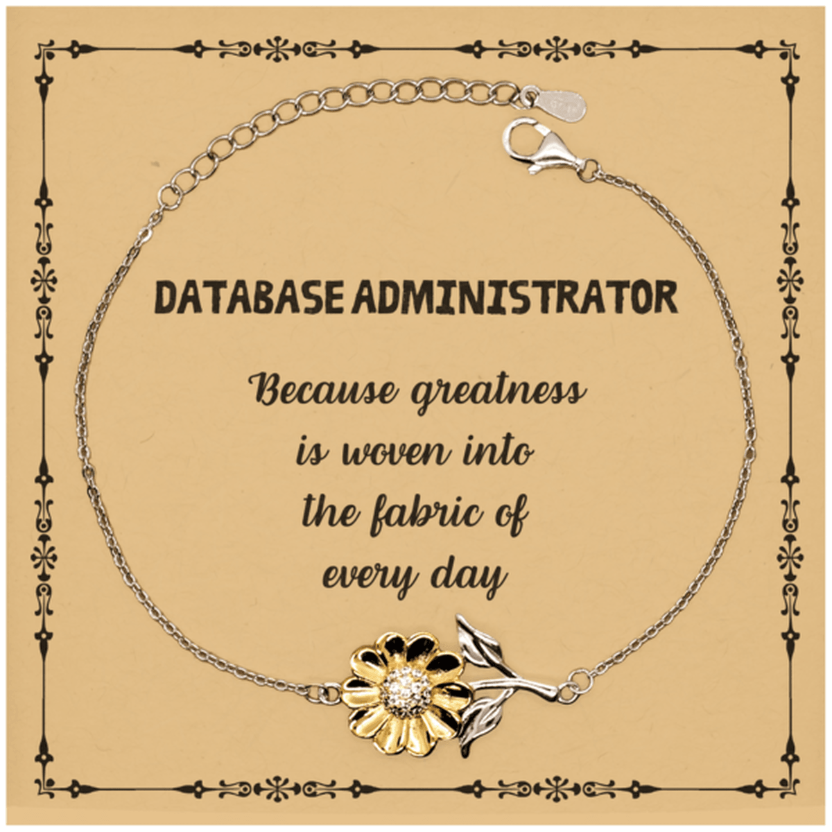 Sarcastic Database Administrator Sunflower Bracelet Gifts, Christmas Holiday Gifts for Database Administrator Birthday Message Card, Database Administrator: Because greatness is woven into the fabric of every day, Coworkers, Friends