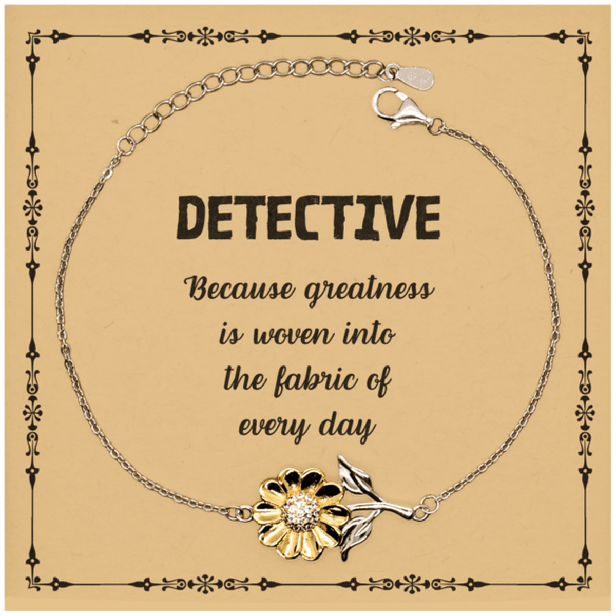 Sarcastic Detective Sunflower Bracelet Gifts, Christmas Holiday Gifts for Detective Birthday Message Card, Detective: Because greatness is woven into the fabric of every day, Coworkers, Friends