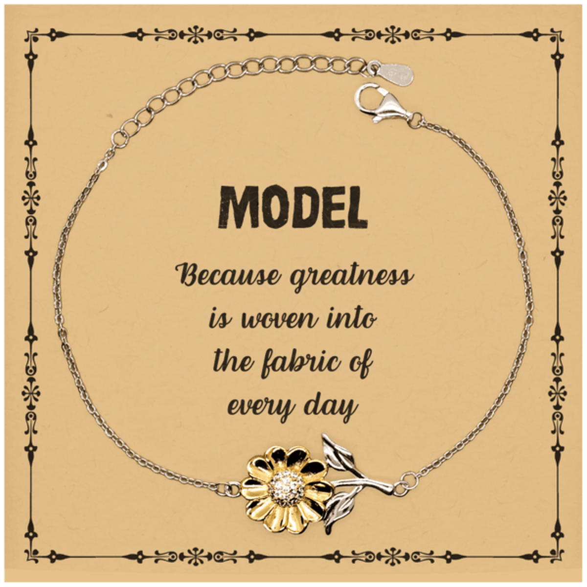 Sarcastic Model Sunflower Bracelet Gifts, Christmas Holiday Gifts for Model Birthday Message Card, Model: Because greatness is woven into the fabric of every day, Coworkers, Friends