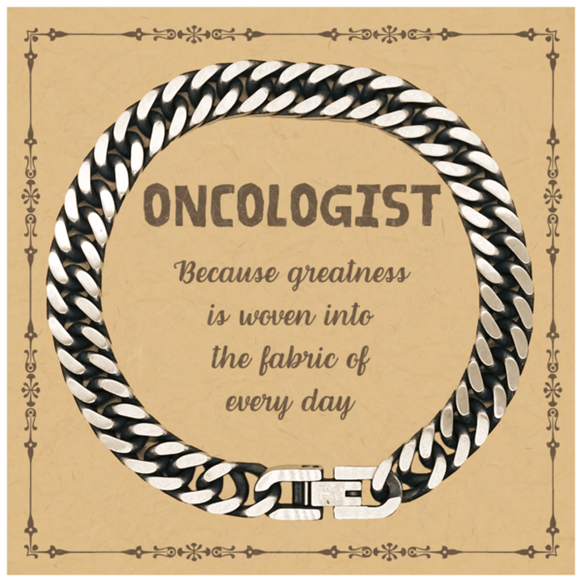Sarcastic Oncologist Cuban Link Chain Bracelet Gifts, Christmas Holiday Gifts for Oncologist Birthday Message Card, Oncologist: Because greatness is woven into the fabric of every day, Coworkers, Friends