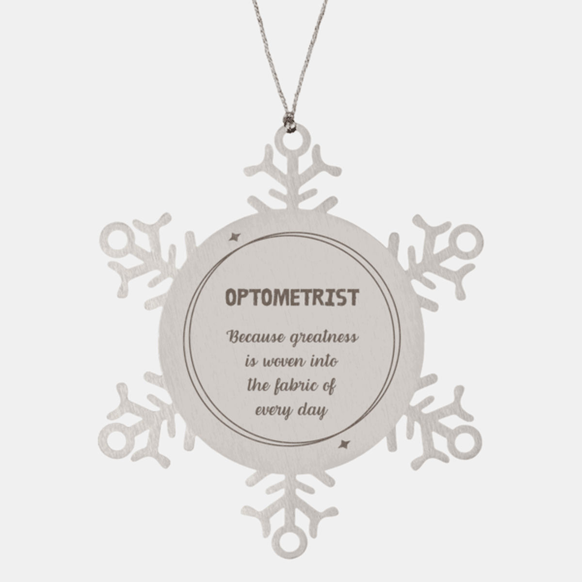 Sarcastic Optometrist Snowflake Ornament Gifts, Christmas Holiday Gifts for Optometrist Ornament, Optometrist: Because greatness is woven into the fabric of every day, Coworkers, Friends