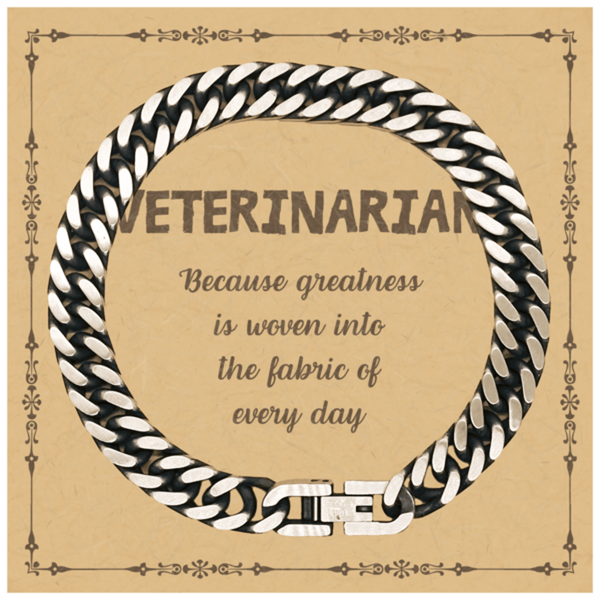 Sarcastic Veterinarian Cuban Link Chain Bracelet Gifts, Christmas Holiday Gifts for Veterinarian Birthday Message Card, Veterinarian: Because greatness is woven into the fabric of every day, Coworkers, Friends