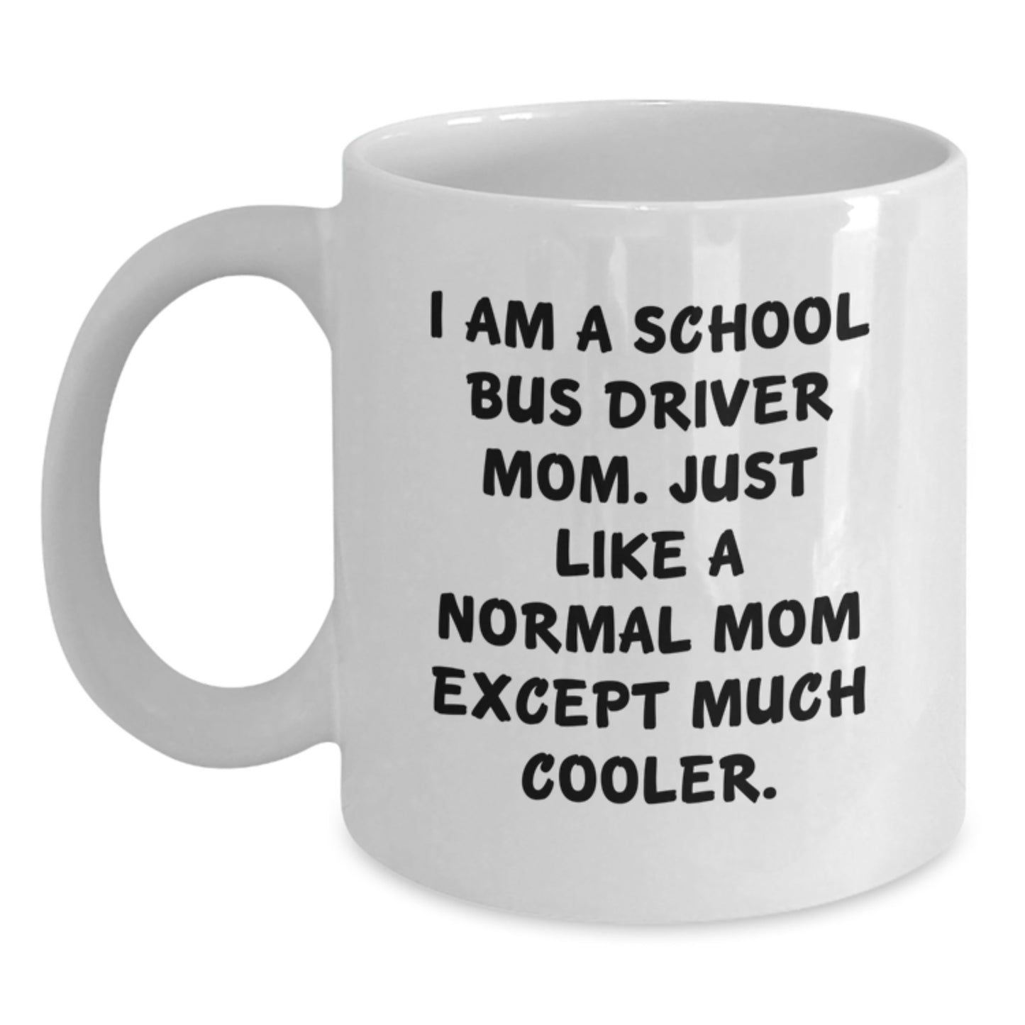- Unique and funny quote 'I Am A School Bus Driver Mom. Just Like A Normal Mom Except Much Cooler.' printed on a white coffee mug
