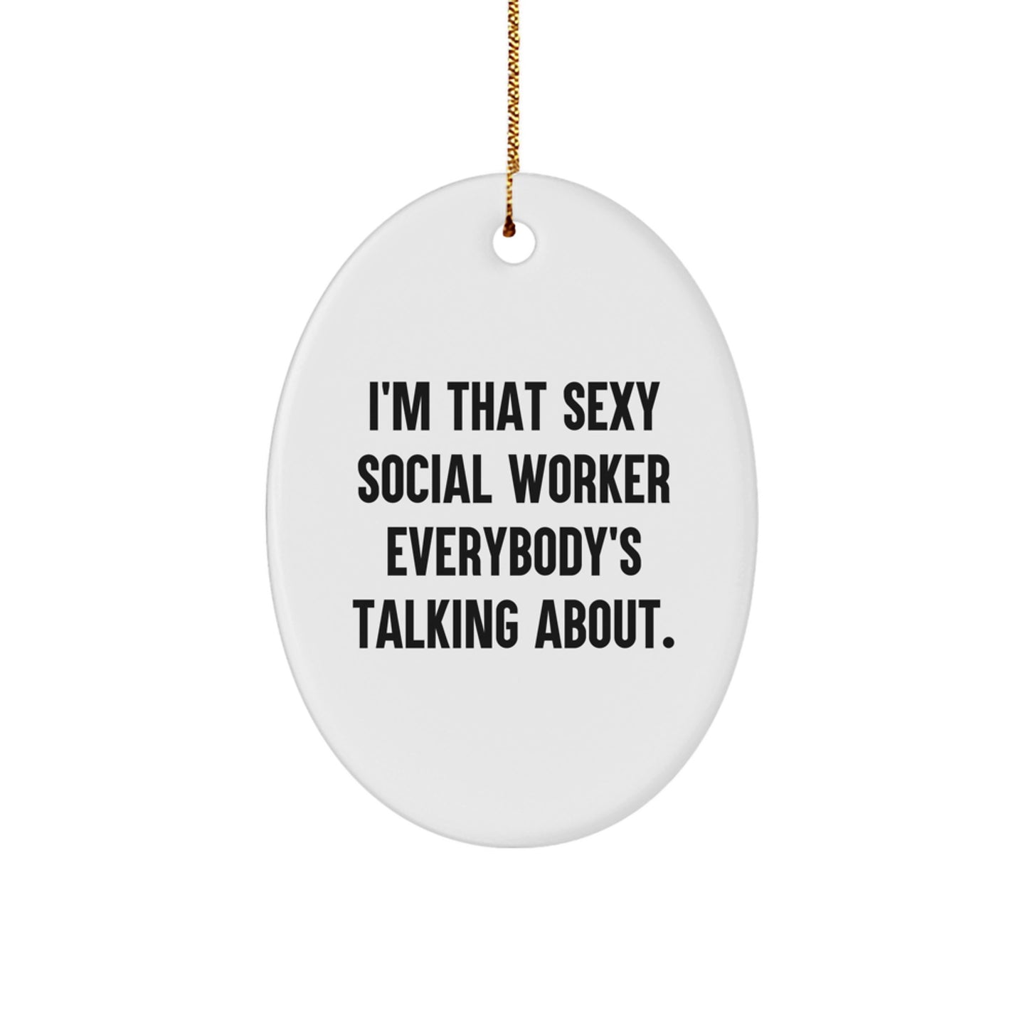 Sexy Social Worker Gifts from Friends, Funny Oval Ornament for Christmas, I'm That Sexy Social Worker Everybody's Talking About.