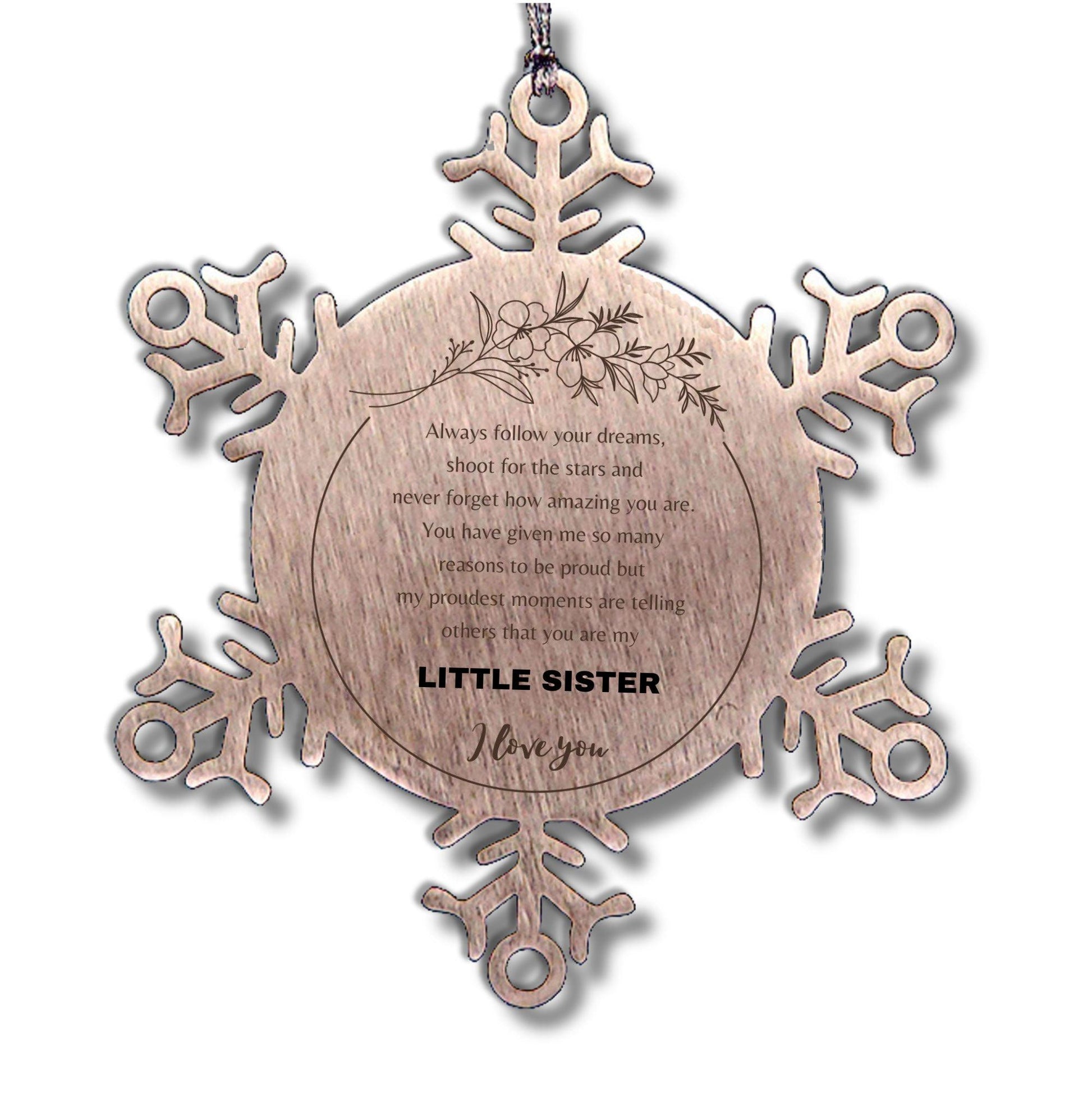 Snowflake Ornament for Little Sister Present, Little Sister Always follow your dreams, never forget how amazing you are, Little Sister Christmas Gifts Decorations for Girls Boys Teen Men Women