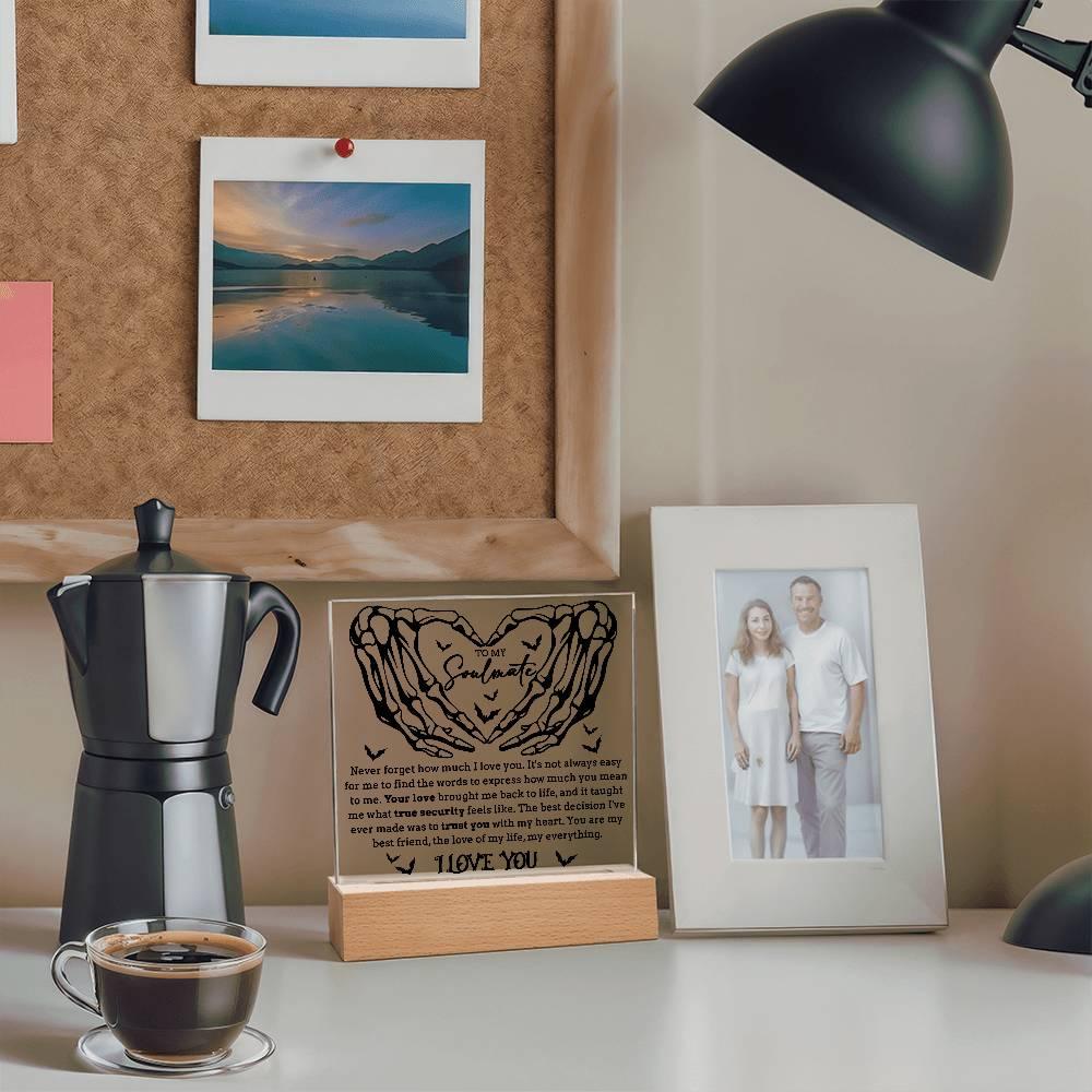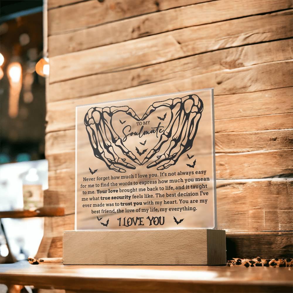 Soulmate - True Security - Halloween Acrylic Square Plaque with LED Lighted Wooden Base
