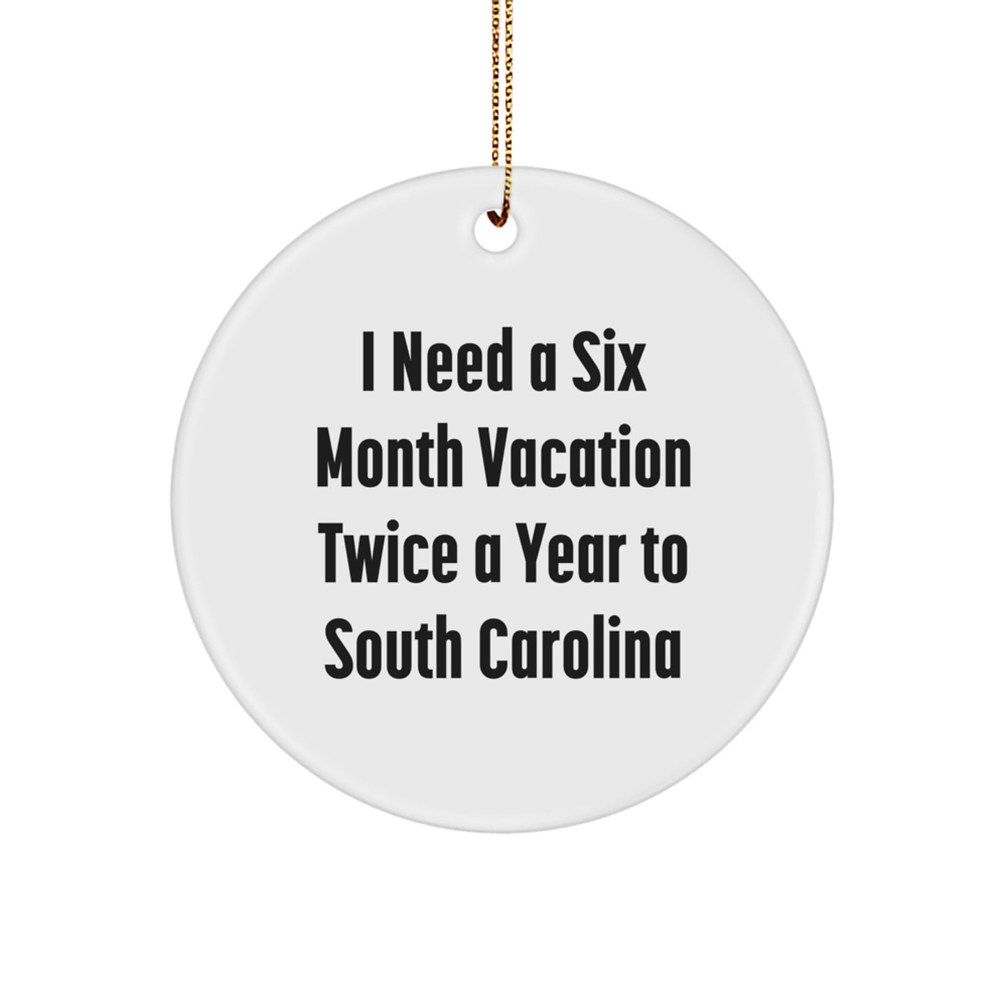 South Carolina Enthusiast Gifts, Funny Circle Ornament, 'I Need A Six Month Vacation Twice A Year' Quote, Christmas Unique Gifts from Family and Friends