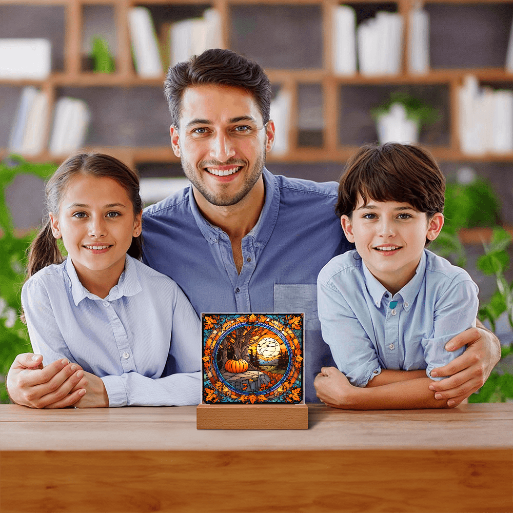 Crafted from premium crystal-clear acrylic, this plaque’s stained-glass style artwork glows beautifully when paired with its optional LED wooden base. Whether displayed on your mantel, dining table, or entryway, it adds a cozy harvest-season ambiance that feels right at home during Thanksgiving and beyond.