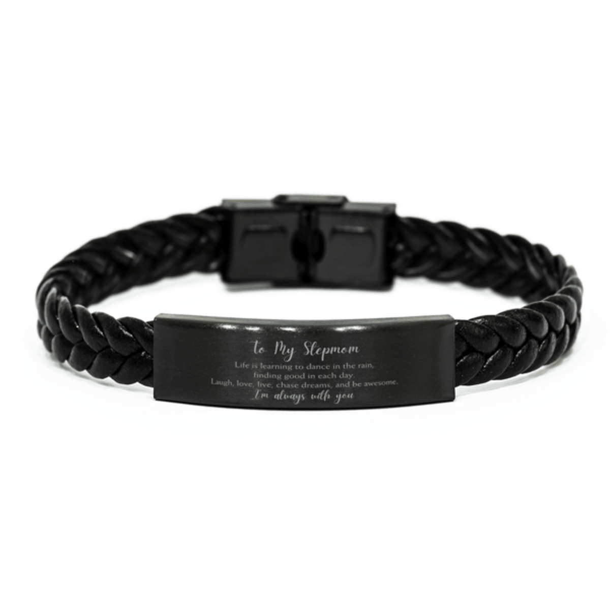 Stepmom Braided Leather Bracelet Life is Learning to Dance in the Rain - Birthday, Christmas Holiday Gifts