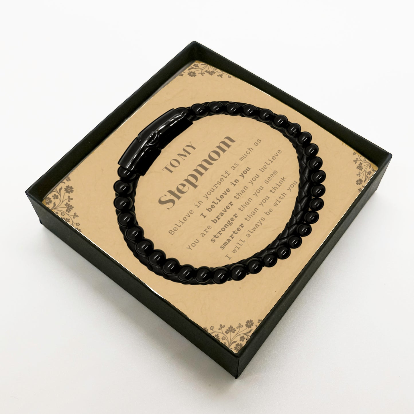 Stepmom Stone Leather Bracelets Motivational Heartfelt Birthday, Christmas Holiday Gift - You are Braver than you Believe, Loved More than you Know
