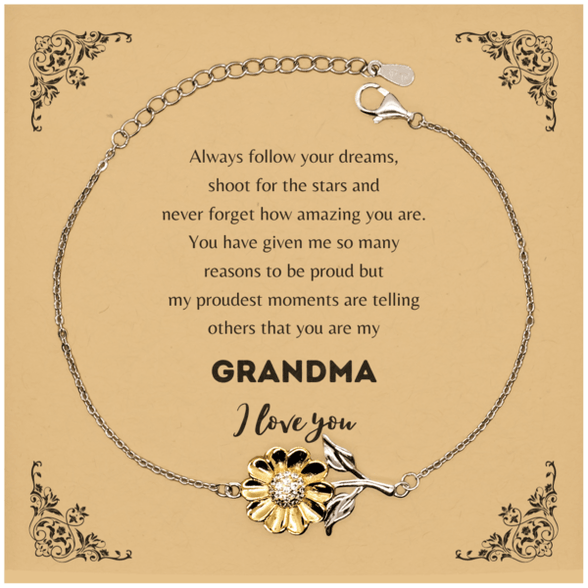 Sunflower Bracelet for Grandma Present, Grandma Always follow your dreams, never forget how amazing you are, Grandma Birthday Christmas Gifts Jewelry for Girls Boys Teen Men Women