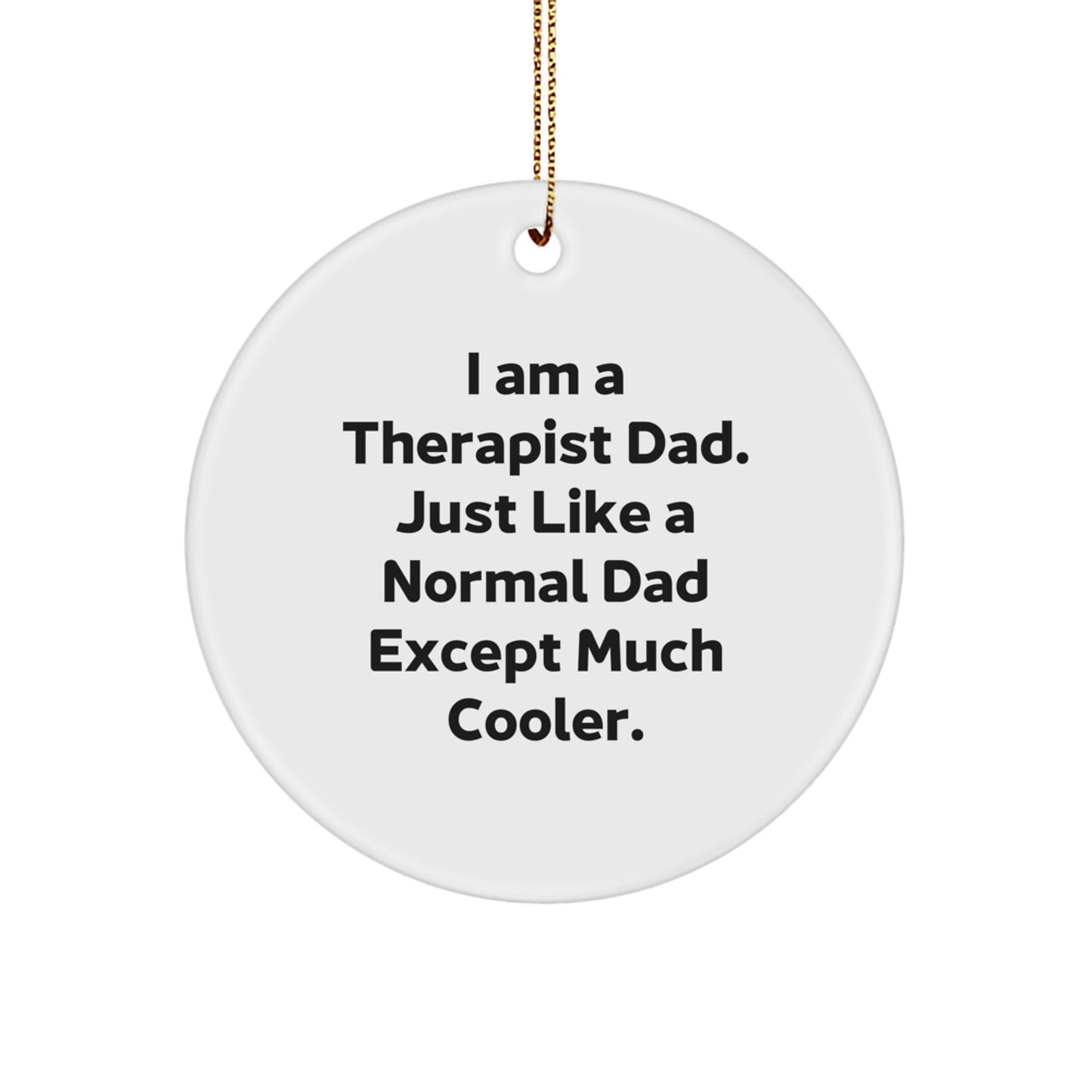 - Add a touch of humor to the Therapist's office with our funny quote Circle Ornament. Featuring the hilarious quote 'I Am A Therapist Dad. Just Like A Normal Dad Except Much Cooler.' this gift is perfect for any Therapist who loves a good laugh.