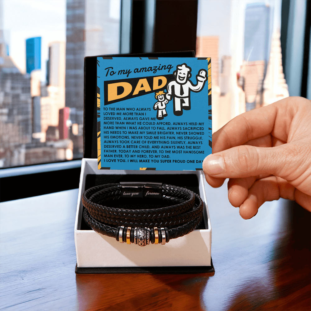 To My Amazing Dad Vegan Leather Bracelet Birthday, Father's Day Gift - with Comic-Style “Handsome Hero” Message Card