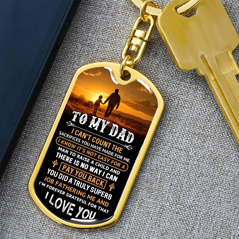 To My Dad I Know It Is Not Easy Graphic Engraved Dog Tag Keychain