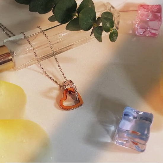 ⨠Elegant & Timeless DesignāThis Necklace features two interlocking hearts, symbolizing an unbreakable bond. It is crafted from stainless steel and finished in rose gold or 18K yellow gold.