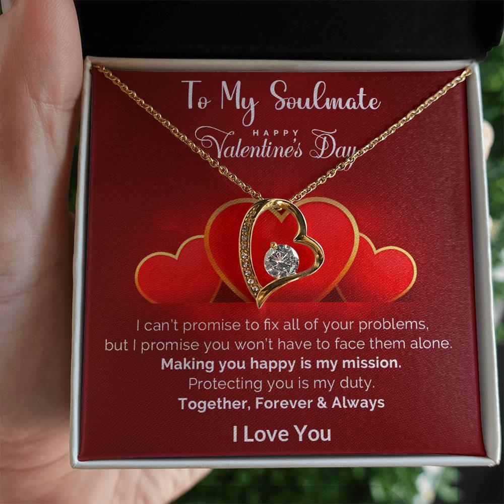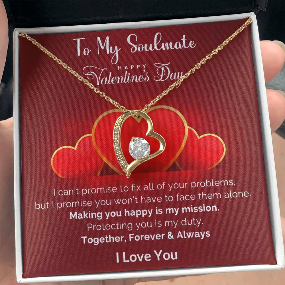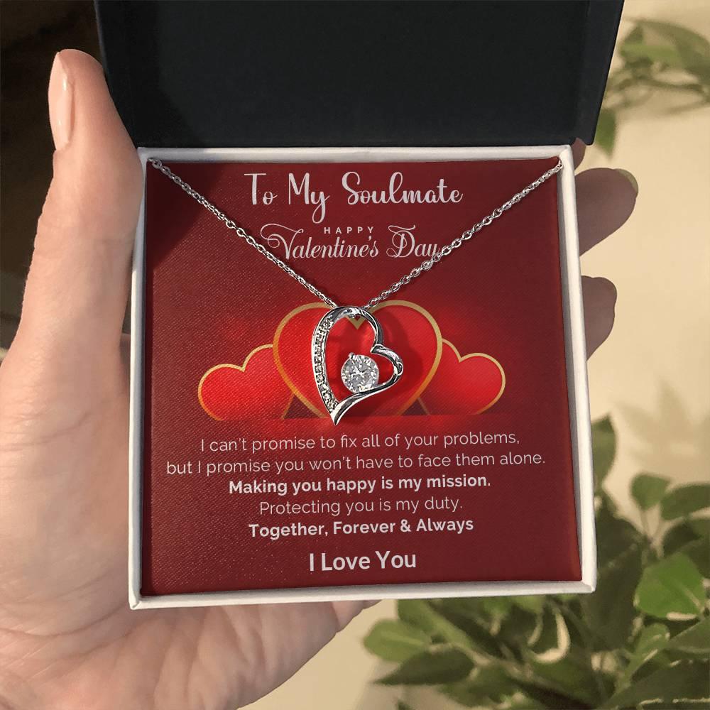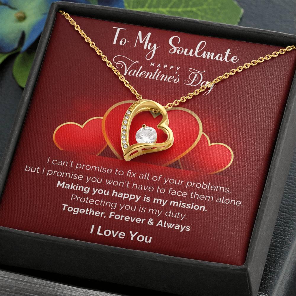 A beautiful gift for your sweetheart. "To My Soulmate, Happy Valentine's Day. I can’t promise to fix all of your problems, but I promise you won’t have to face them alone. Making you happy is my mission. Protecting you is my duty. Together, Forever and Always. I Love You."