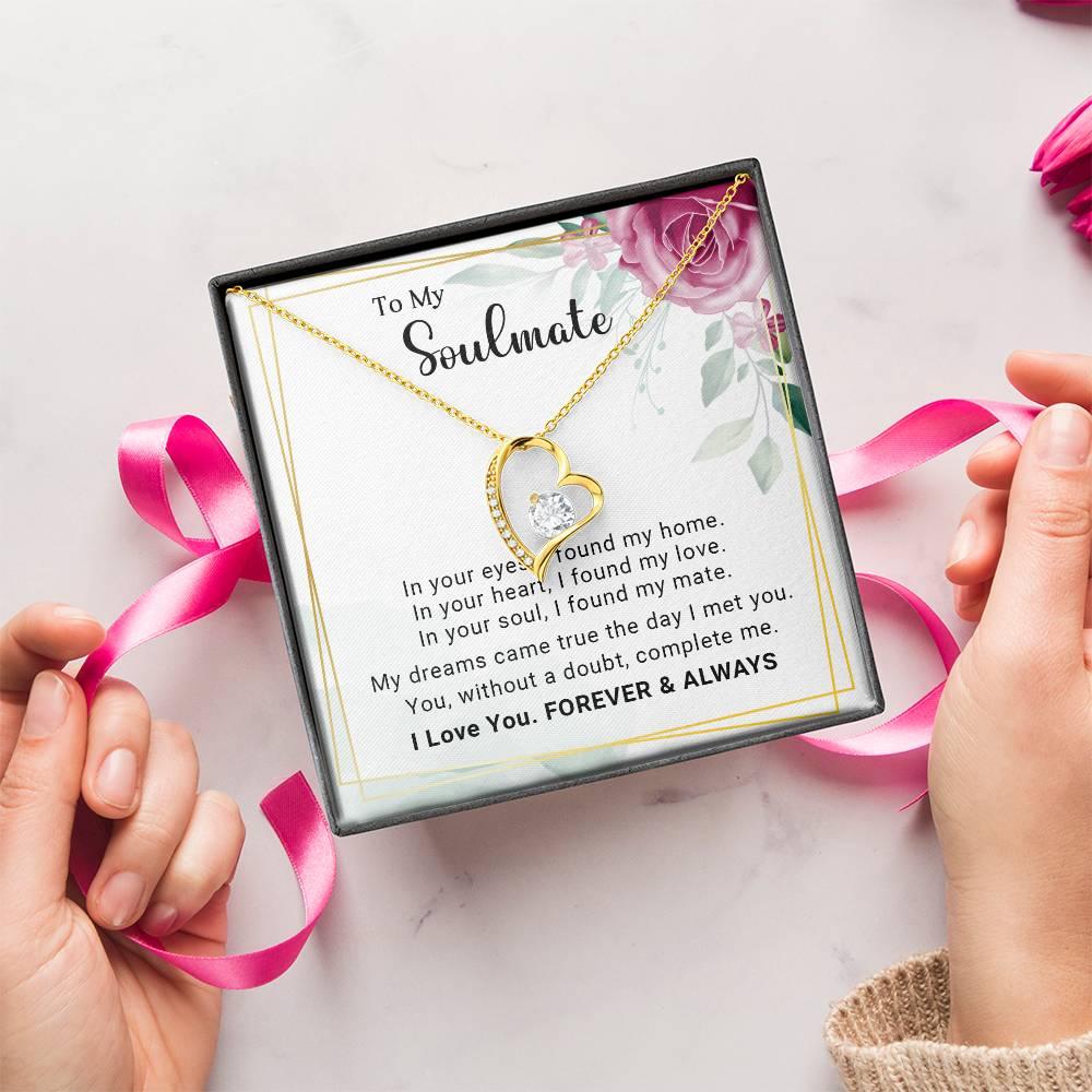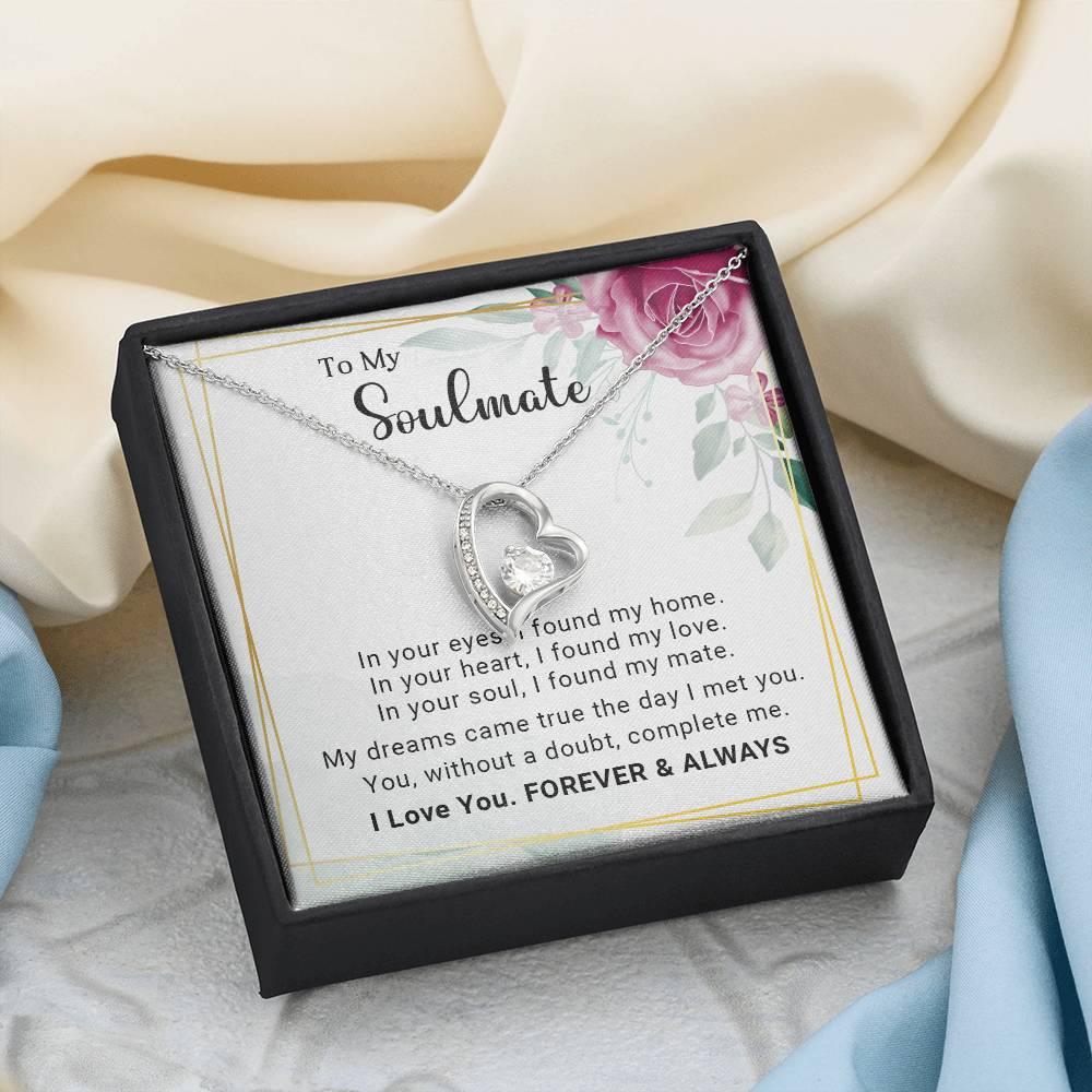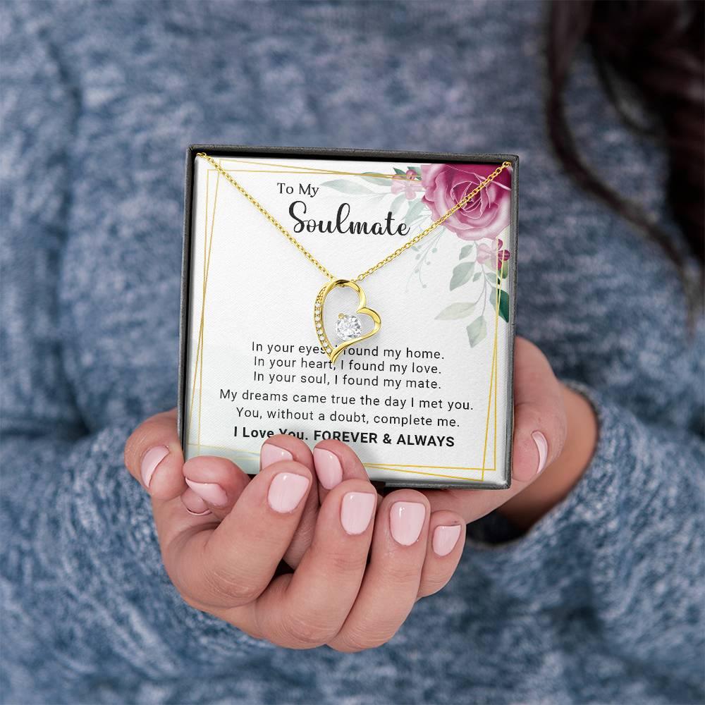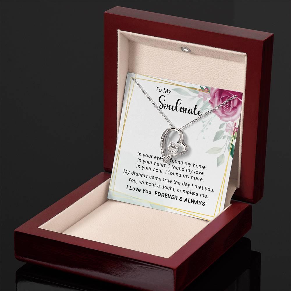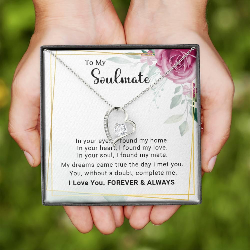A beautiful gift for your sweetheart. "To my Soulmate, In your eyes, I found my home. In your heart, I found my love. In your soul, I found my mate. My dreams came true the day I met you. You, without a doubt, complete me. I Love You. Forever and always"