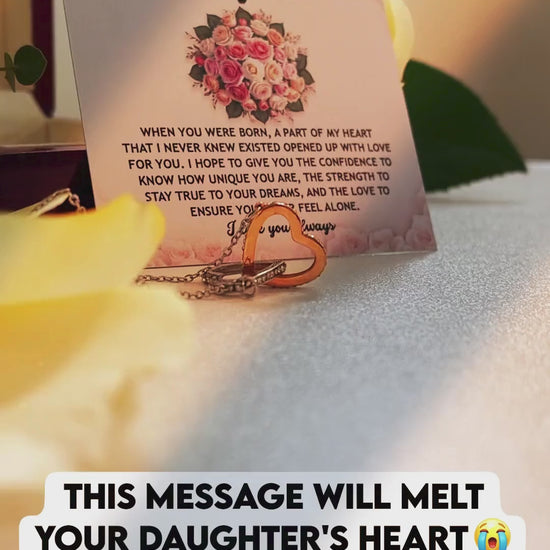 Celebrate your daughter's uniqueness and inner strength with this Interlocking Hearts Necklace, a symbol of unconditional love and support. Featuring two beautifully intertwined hearts, this elegant piece is crafted from high-quality surgical steel, available in rose gold or 18K yellow gold finish, and adorned with cubic zirconia accents for a delicate sparkle.