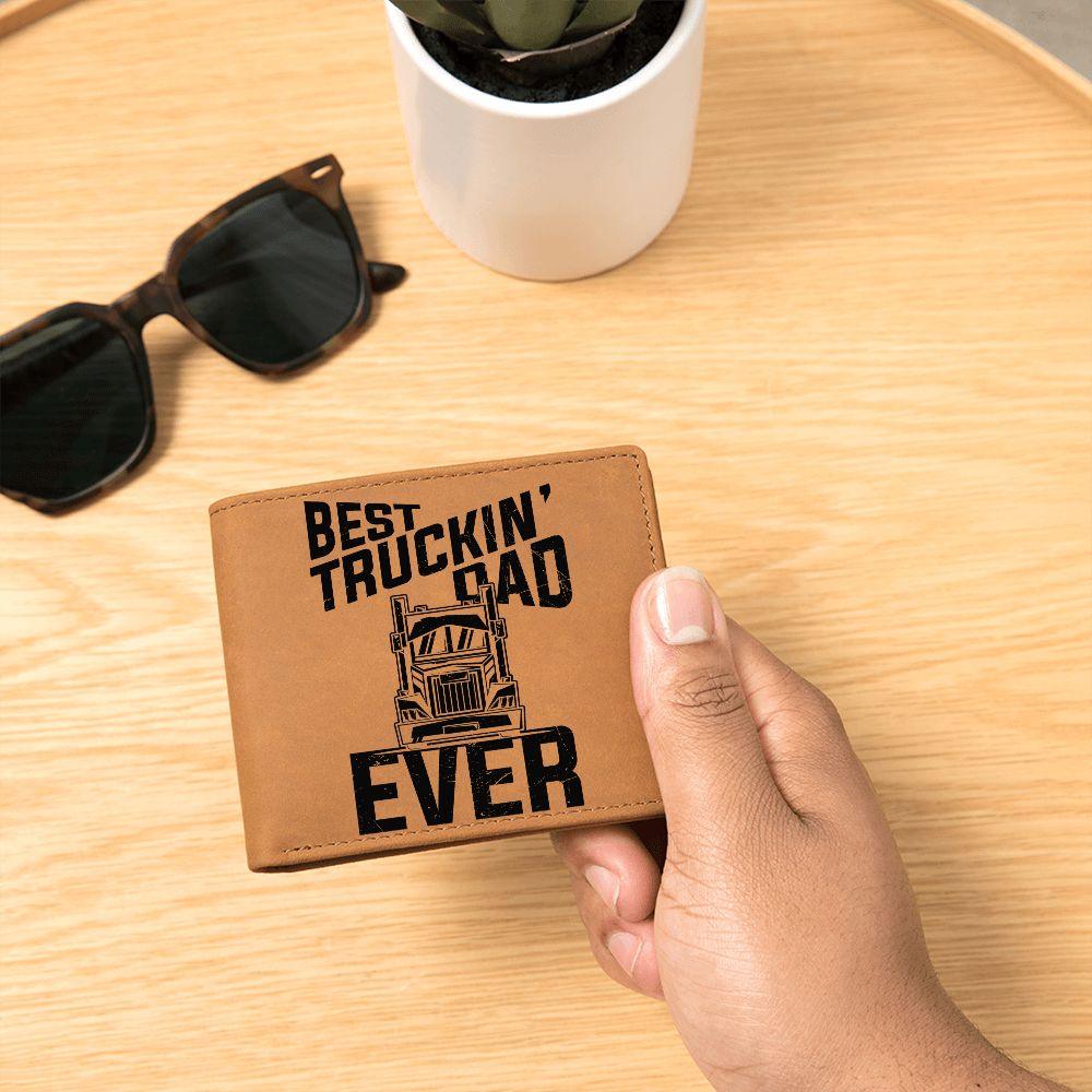 Gift for Trucker "Best Trucking Dad Ever" Leather Wallet