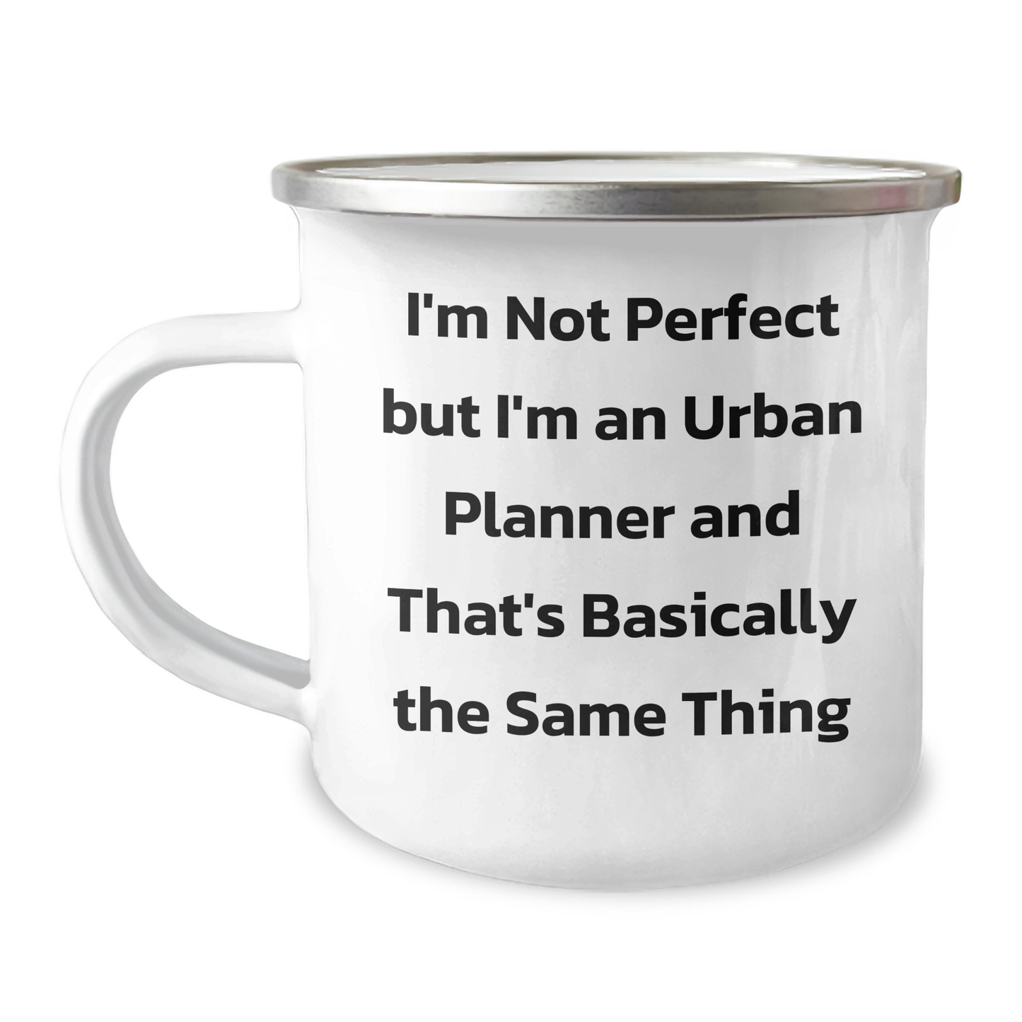 Urban Planner Graduation Gifts from Friends, Unique Funny Camping Mug, 12 oz Stainless Steel with Enamel Finish, 'I'm Not Perfect But I'm An Urban Planner And That's Basically The Same Thing' Quote