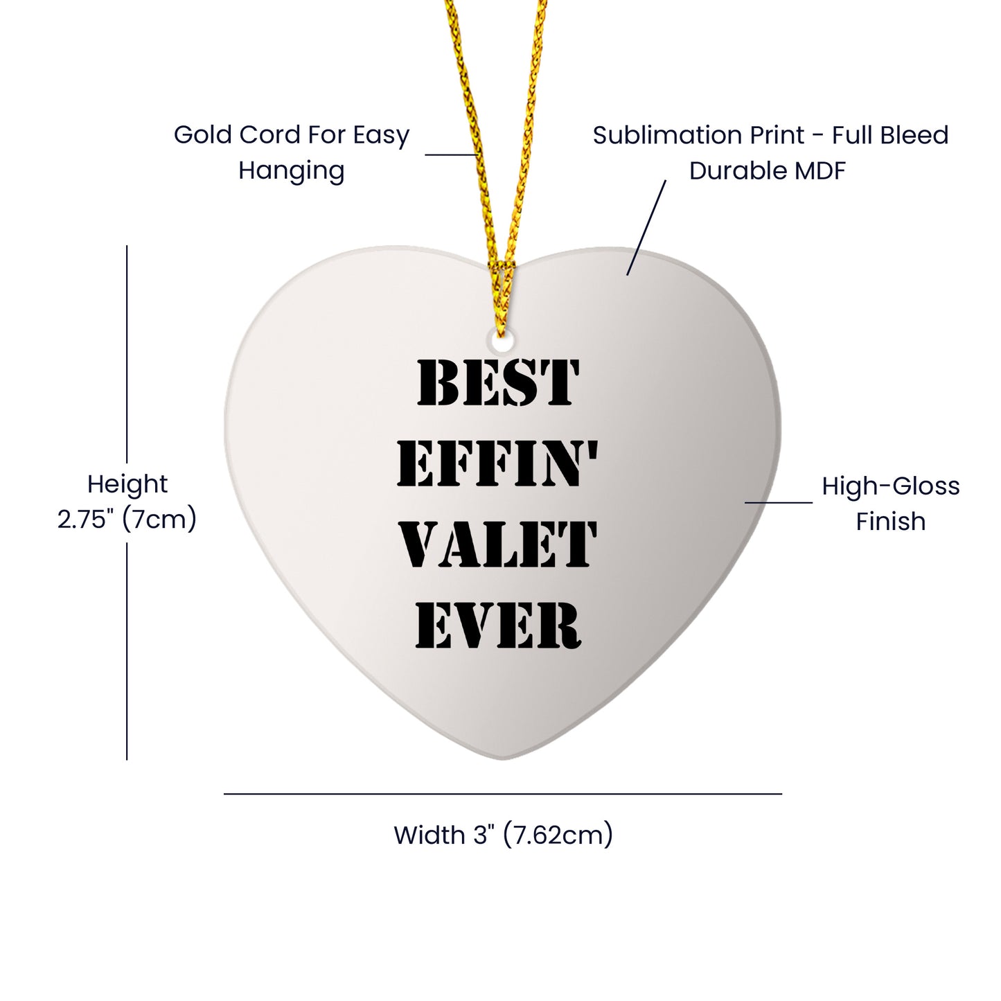 - Unique and hilarious 'Best Effin' Valet Ever' Heart Ornament design will bring a smile to the face of any Valet enthusiast