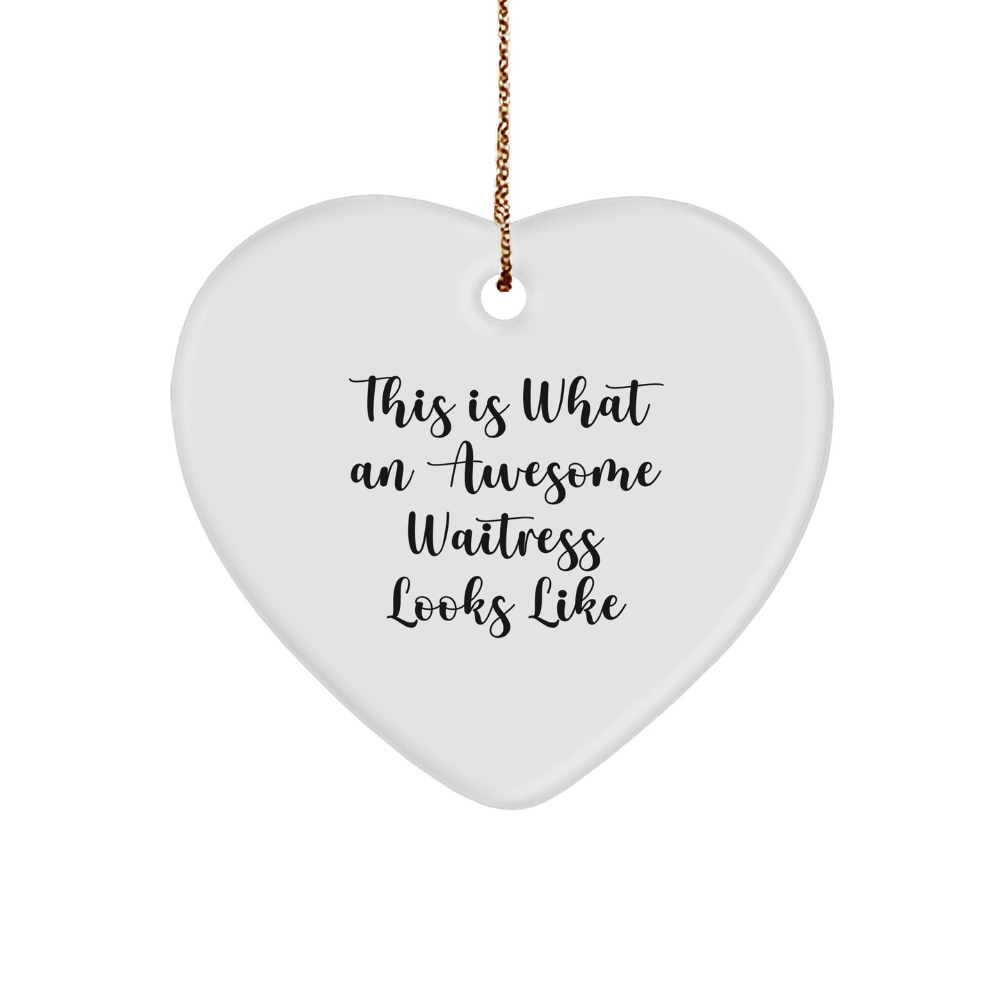 Waitress Heart Ornament Gifts from Men to Awesome Waitresses - 'This Is What An Awesome Waitress Looks Like' Quote, Heart Shaped, White Color, Perfect for Christmas