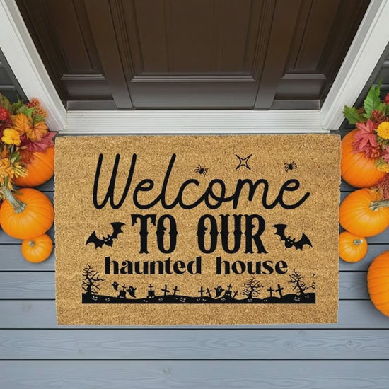 Welcome to Our Haunted House Coir Doormat – Spooky Halloween Welcome Mat | Rustic Haunted Porch Decor | Funny Fall Entryway Rug
