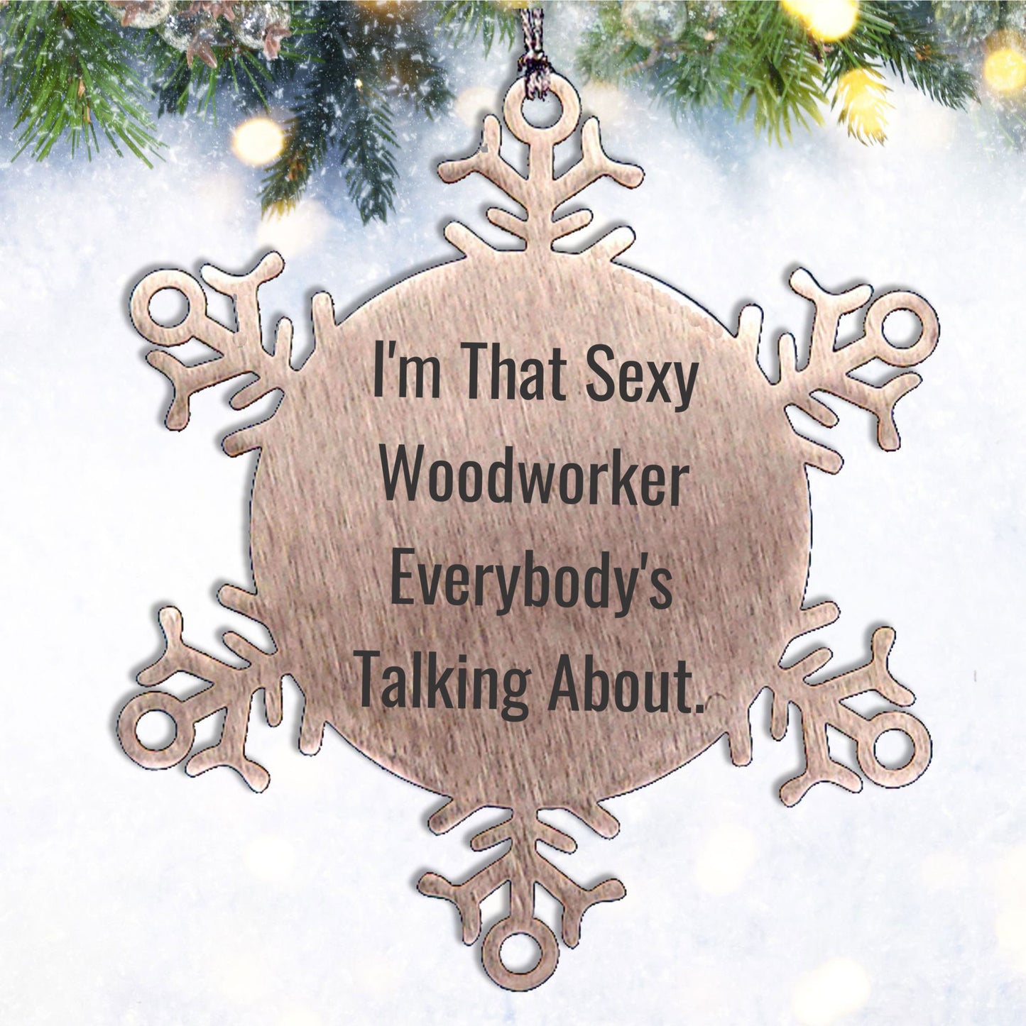 Woodworker Snowflake Ornament for Christmas, 'I'm That Sexy Woodworker Everybody's Talking About.' - Unique Gift for Woodworker Shatterproof Stainless Steel