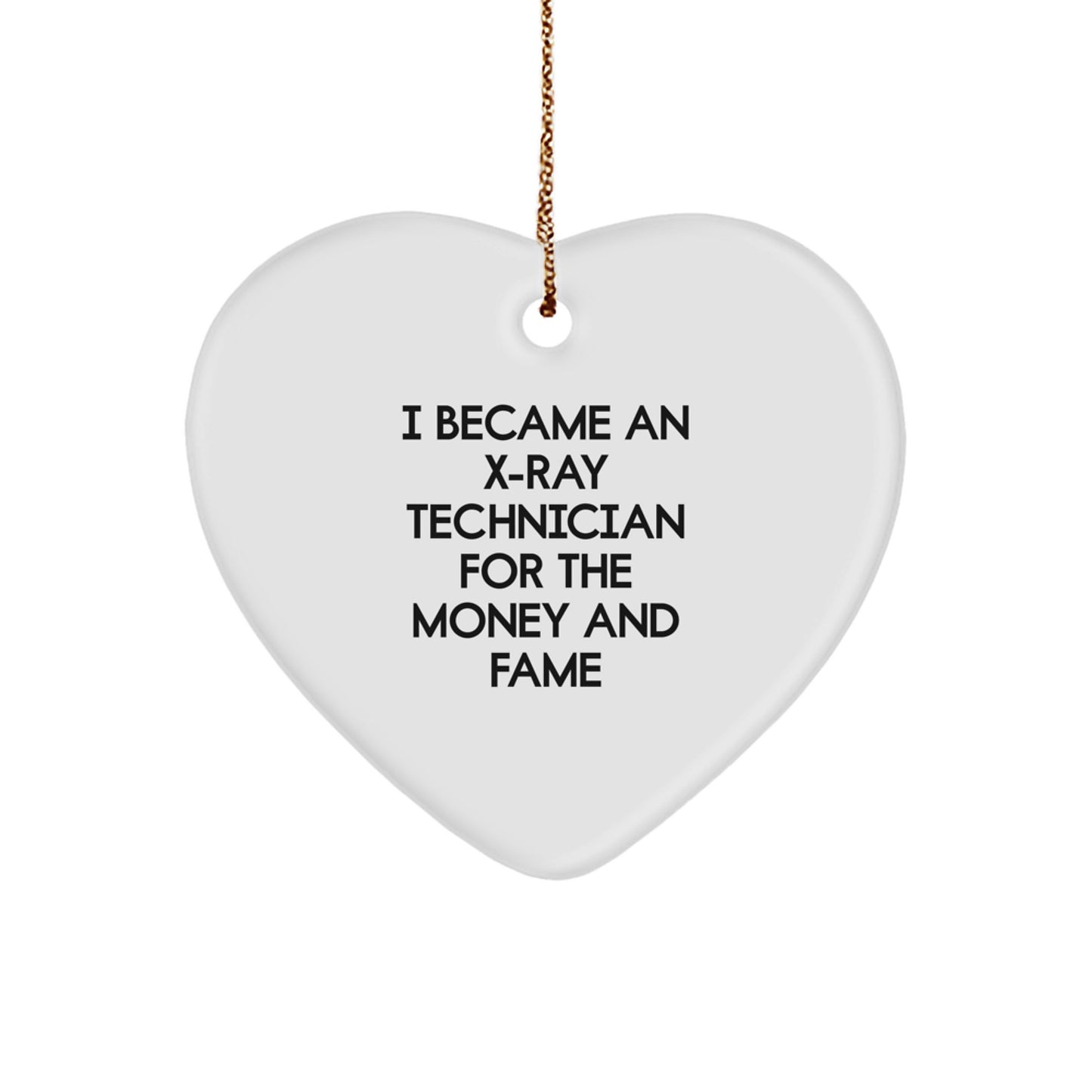 X-Ray Technician Gifts from Friends for Christmas Unique Heart Ornaments, 'I Became An X-ray Technician For The Money And Fame' Funny Quote, Heart Shaped, Durable, Lightweight, Easy Hanging